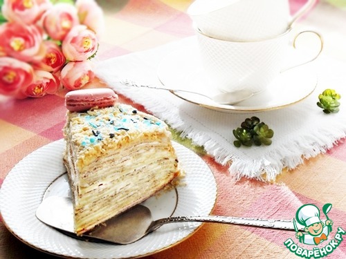 В праздничные дни и готовится всё празднично. Вот и привычные блинчики предлагаю подать в виде торта. И торт этот можно подавать в горячем виде. Да-да! Горячий торт, нежный, во рту тает!