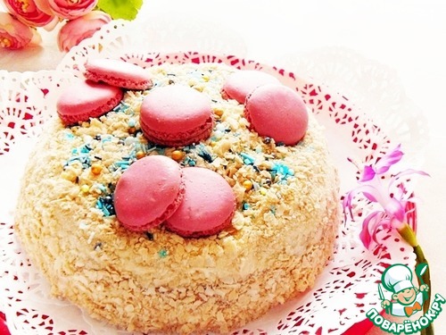 Можете оформить торт на своё усмотрение. Я размяла два вафельных коржа и посыпала этой крошкой верх и бока торта.