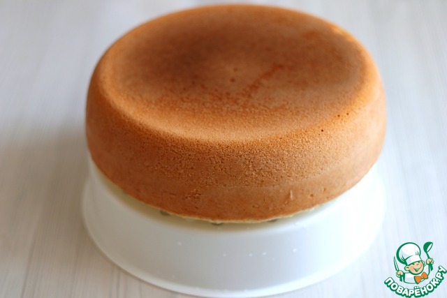Готовый бисквит остудить до комнатной температуры, затем обернуть пищевой пленкой и убрать в холодильник на ночь.