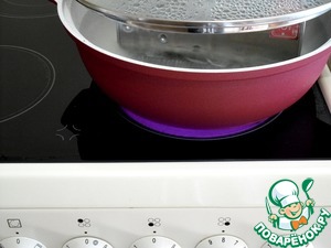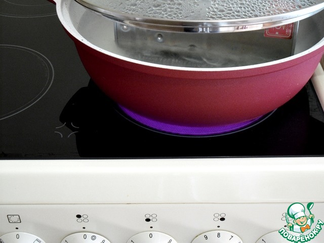 Залила в кастрюлю воду и, когда она закипела, отправила в неё ветчинницу. Поскольку у меня все продукты уже готовые, я отваривала 30 минут, на огне выше среднего, для термической обработки и получения хорошо прессованного батона.