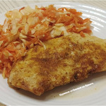 Специи насыпьте на бумагу. Куриное филе разрежьте на две части горизонтально.