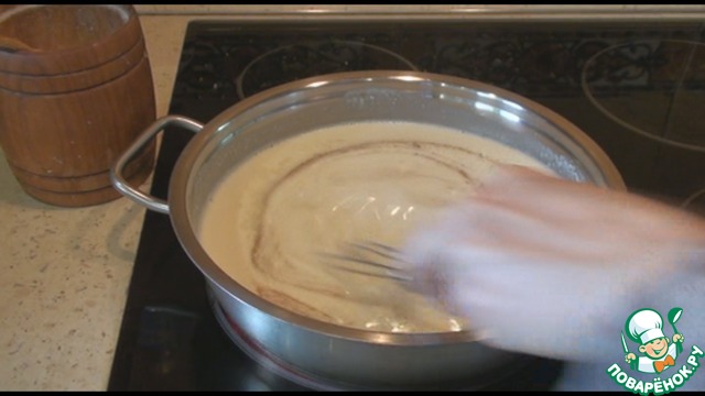 После этого вливаем небольшими порциями молоко и хорошо размешиваем, чтобы не было комочков.
