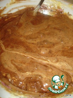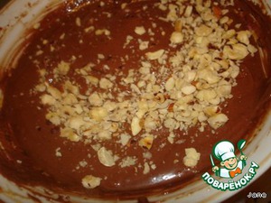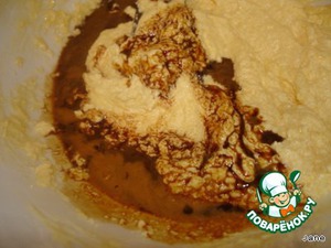 К этой массе добавить растопленный шоколад и тщательно перемешать.