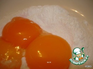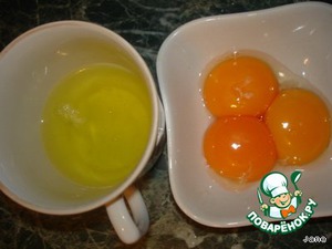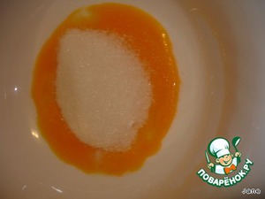 Желтки взбить с 2/3 нормы сахарной пудры добела.