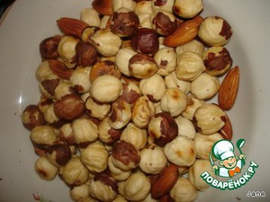 Цельные орехи раздробить и добавить немного в крем (остальное оставить для украшения).