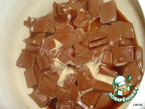 Шоколадный крем: шоколад разломать на кусочки, растопить на водяной бане. -