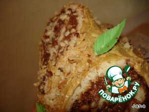 Сверху рулет посыпать дроблеными орешками. Поставить на 1 час в холодильник.