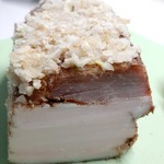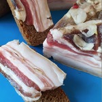 Сало выходит как-бы вяленым, а прослойки мяса остается ярко красным, чего обычно не бывает при традиционной сухой засолке.