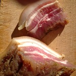И так, берем подчеревок. Я взяла 1 из трех кусков, на которые я нарезала презент Светы (Светик, привет еще раз!). Сейчас у меня еще два в процессе засолки. Если у Вас больший кусок, советую его нарезать на такие относительно тонкие, примерно по 5 см.