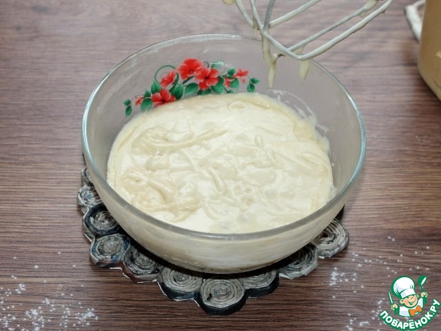4. В жидкую смесь, небольшими порциями вмешиваем мучную.