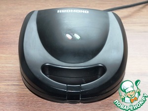 8. Открываем крышку мультипекаря и равномерно раскладываем тесто на нижнюю панель прибора. Закрываем крышку.