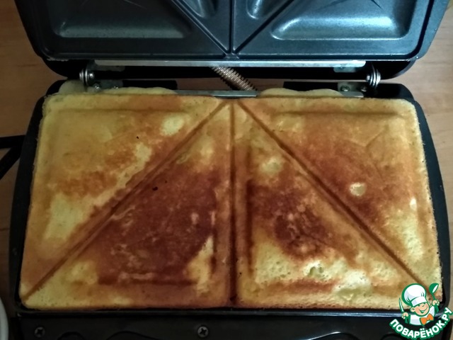 В мультипекарь Redmond вставить панели "сэндвич". Заполнить нижние ячейки тестом почти полностью.