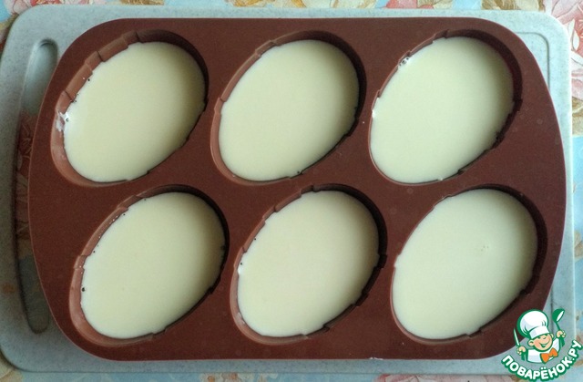 • Разлить будущую панна-котту по формочкам, у меня в виде половинок яиц.