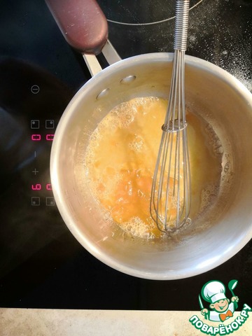 Далее в сотейнике подогреваем фруктовое пюре (у меня из манго) и вводим предварительно разбухший желатин.