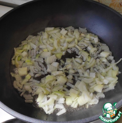 Ждем, года нагреется масло и засыпаем лук. Немного солим. -