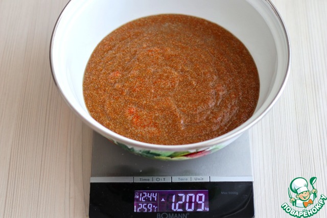 На выходе у нас получится чистый продукт (икра). Вес брутто 1209. Вес нетто 700 гр.