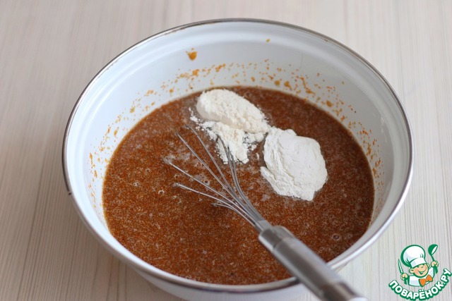 Добавить 2 ст. ложки муки, 1 ст. ложку крахмала.