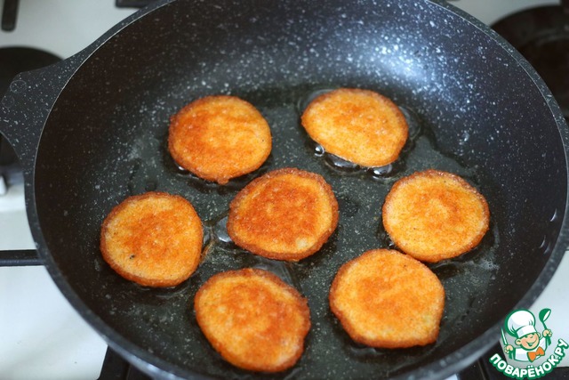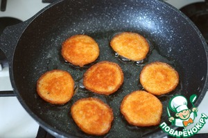 На сковороду добавить растительное масло. Сковороду хорошо разогреть на среднем огне. Столовой ложкой выложить икру на сковороду.