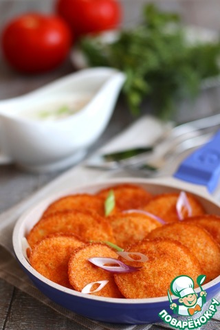Репчатый лук (1 шт.) нарезать мелкими кубиками, натереть морковь (1 шт.) на терке с мелким сечением. Пассеровать лук и морковь на растопленном сливочном масле (2 ст. ложки). Далее добавить в смесь икры, муки и крахмала пассерованные лук и морковь. Смесь перемешать.