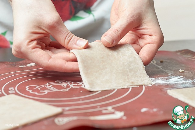 Отдохнувшее тесто раскатать до толщины 1,5 мм.