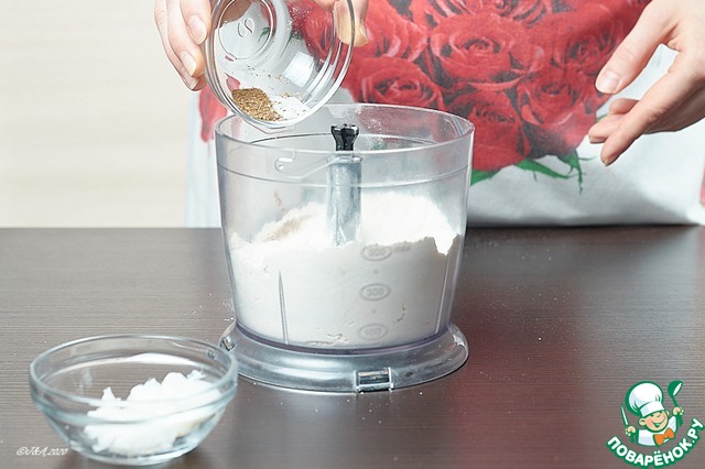 Подготовьте все необходимые ингредиенты. Смалец должен быть из морозилки. Яйца и вино из холодильника. Из техники нам нужен измельчитель и мультиварка Redmond.