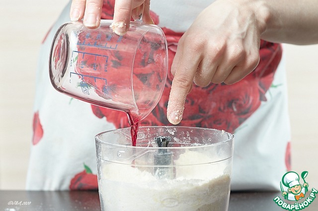 Туда же влить вино. Его ничем заменить нельзя. Вино должно быть сладкое и крепкое. Я взяла кагор.
