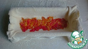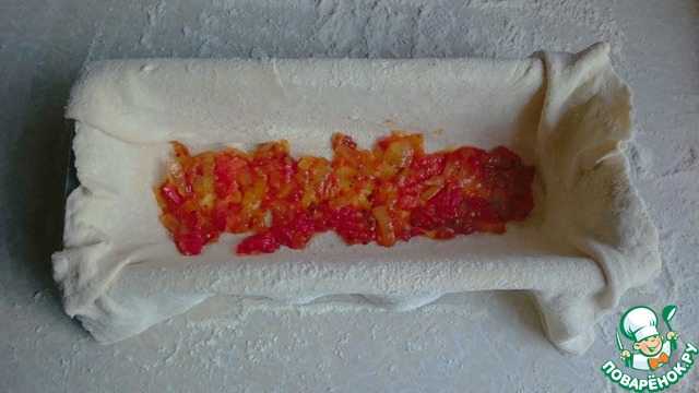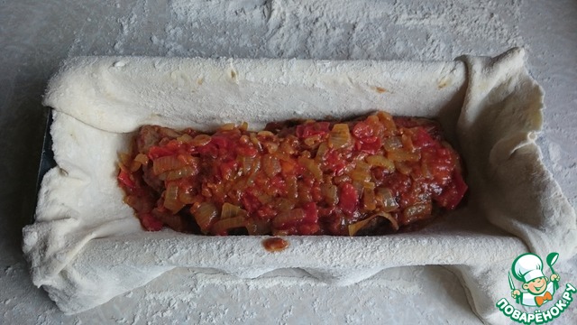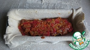 Есть, есть похожие рецепты на сайте, но думаю маленькую фишечку добавлю. Лук и помидоры не дают тесту засохнуть. Сверху "батончик с мясом" получается сухой, а внутри тесто пропитано соком от овощей и мяса. Это скорее холодная закуска, но конечно и в горячем виде очень вкусно.