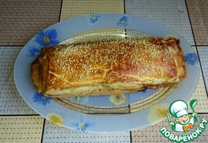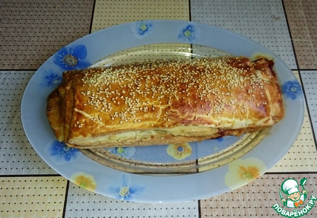 Смазываем взболтанным яйцом, посыпаем кунжутом.