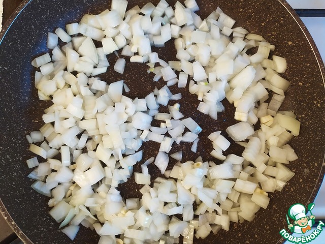Обжариваем лук и чеснок, примерно 3 минуты.