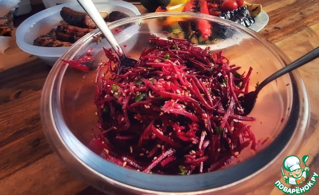 Очень вкусный, пряный, острый и полезный салат из сырой свеклы. Конечно, в результате некоторых манипуляций свекла становится не совсем сырой. Вкус этого салата разительно отличается от вкуса салата из вареной свеклы. Обязательно попробуйте!