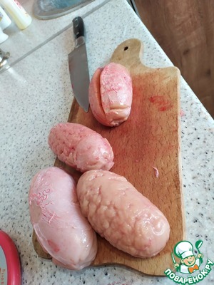 Я обнаружила прекрасного вида увесистую "пару" в пакете с говяжьими обрезками из мясного отдела гастронома, в котором обычно заказывала их для своего Байкала. Это всё всегда было чистым и свежим, с утреннего убоя, ну и не воспользоваться такой удачей я не могла!