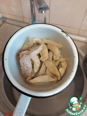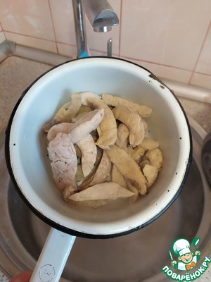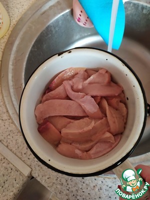 Нарезаем дольками, хорошенько промываем в холодной воде.