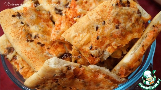 Ну, и совсем ленивый вариант острого печенья - галетный, грубый такой, деревенский. Тесто раскатывается размером с противень, посыпается всем, чем нужно и размечается глубокими бороздками (делаю тупой стороной ножа) на желаемые кусочки. Выпекается, а потом просто ломается по намеченным бороздкам.