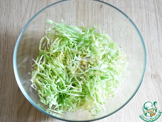 Слегка обмять, чтобы капуста впитала в себя специи. -