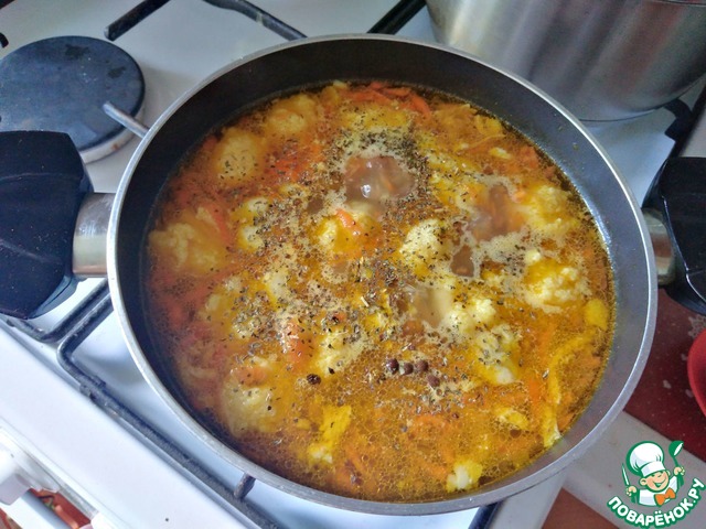Рецепт «Пряный куриный суп с манными клёцками»: