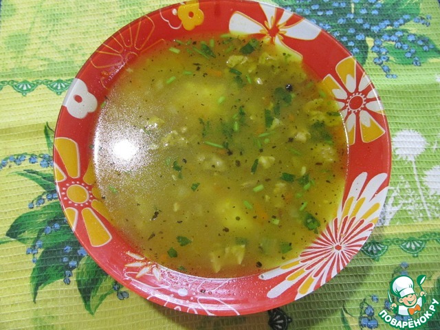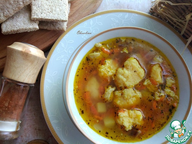 Пряный куриный суп с манными клёцками