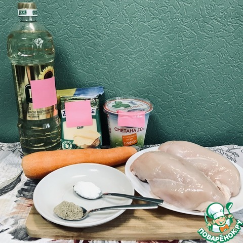 Ингредиенты для «Куриное филе под морковью с сыром»: