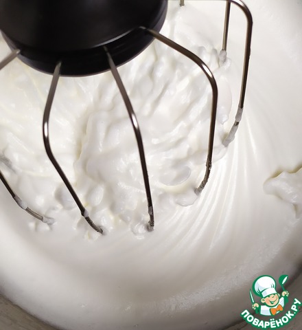 Взбить белки до мягких пиков. Они должны быть довольно плотные.
