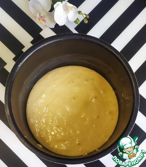Чашу мультиварки-скороварки REDMOND смазать сливочным маслом, выложить получившееся тесто и разровнять.