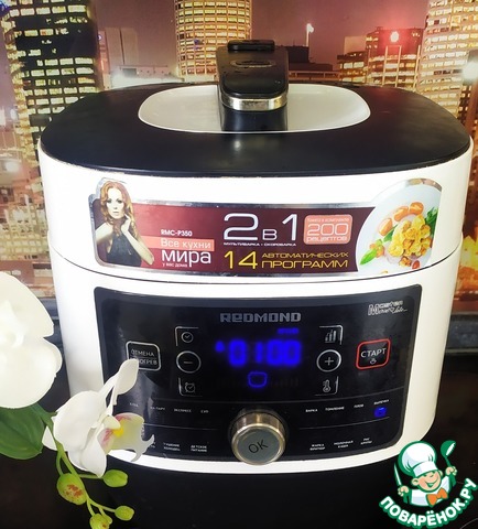 Закрыть крышку. Установить программу "ВЫПЕЧКА". Время приготовления 1 час. Нажать кнопку "СТАРТ". Готовый бисквит оставить в мультиварке-скороварке на 15 минут.