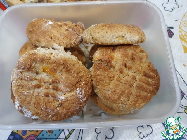 Из теста слепить небольшие шарики, выложить их на противень для запекания и прижать вилкой крест-накрест. Выпекать в духовке при 190º 10 минут.
