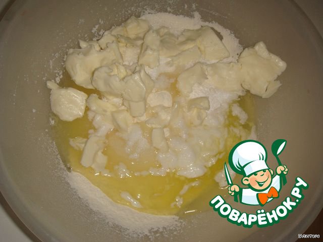 - Масло сливочное (для теста-100г., сверху-50г.) — 150 г