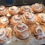 Булочки поднялись, включаем духовку на 180 градусов и выпекаем, примерно через 10 минут, достать, полить сливками и снова на 10 мин. В духовку. Готовые, горячие синнамоны смазываем топингом. Ваша вкуснятина готова! Зовите всех к чаю и приятного вам чаяпития!