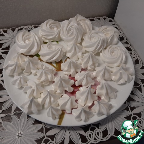 Безе нужно укладывать с расстоянием друг от друга, оно при выпечке подрастёт и увеличится.