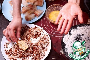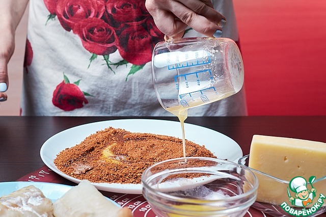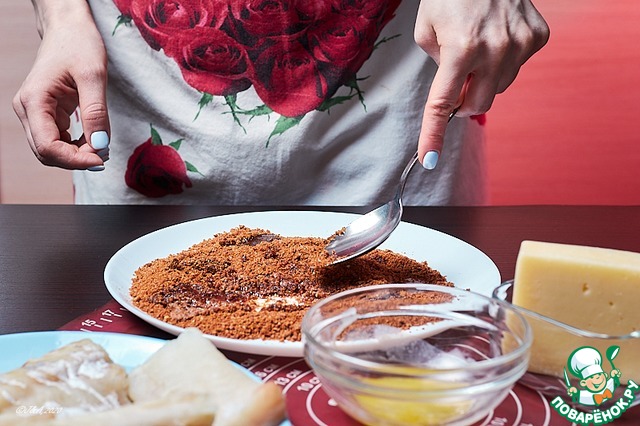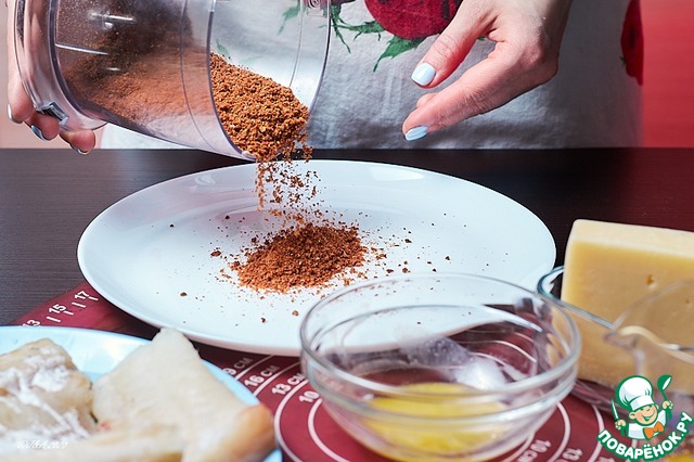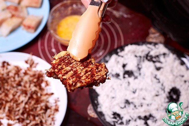 Панировочные сухари я сделала сама из бородинского хлеба с помощью измельчителя Redmond.