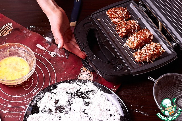 Нагрейте панели мультипекаря. Выложите наггетсы на панель.
