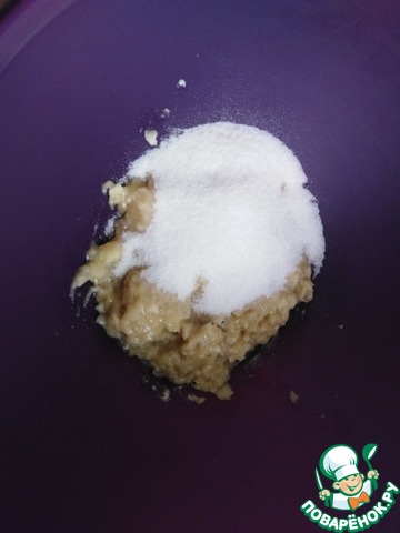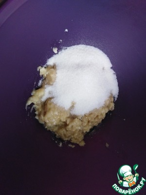 Бананы размять вилкой, добавить сахар. (можно в блендере, но я все размешивала вилкой)