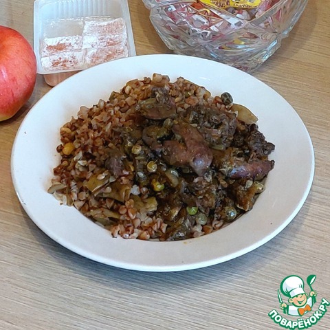 Рецепт «Нежная куриная печень с рисом и овощами»: