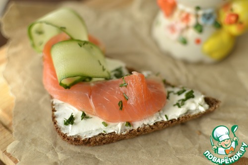 Нарезаем хлебушек, рыбку сбрызгиваем лимонным соком, мажем хлеб творожным сыром, укладываем рыбку, огурец и присыпаем укропом
