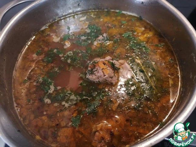 Рецепт «Мясной фасолевый суп с белыми грибами»: